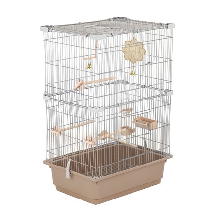 Двухэтажная клетка прямоугольной формы - удобный и функциональный дом для птиц: он занимает совсем немного места и отлично подходит для мелких домашних животных вроде волнистых попугаев, канареек и зябликов. В комплектацию изделия также входят: пластиковые жердочки, кормушка, поилка, подвесное кольцо с колокольчиком и зеркало. Кроме того, клетка оборудована удобной ручкой на крыше, облегчающей процесс переноски изделия, и специальным пластиковым выдвижным поддоном, облегчающим процесс уборки. Размер изделия: 420х300х660мм.
