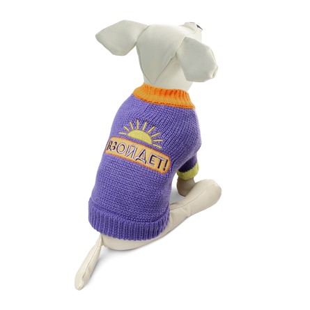 Свитер по мотивам любимого советского мультфильма - это удобный и функциональный аксессуар для собак, который просто незаменим в холодную погоду. Изделие защитит вашего питомца от ветра и согреет в непогоду, а универсальный фасон не будет стеснять движений питомца во время прогулки. Такой свитер со стильным дизайном станет украшением гардероба вашего питомца. Материал: акрил. Длина спины: 400мм; обхват груди: 480-520мм; обхват шеи: 370мм. Цвет: фиолетовый.