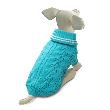 Свитер нежной расцветки и оригинальной вязки - это удобный и функциональный аксессуар для собак, который просто незаменим в холодную погоду. Изделие защитит вашего питомца от ветра и согреет в непогоду, а универсальный фасон не будет стеснять движений питомца во время прогулки. Такой свитер со стильным дизайном станет украшением гардероба вашего питомца. Материал: акрил. Цвет: бирюзовый. Размер: 45см (ХХL).