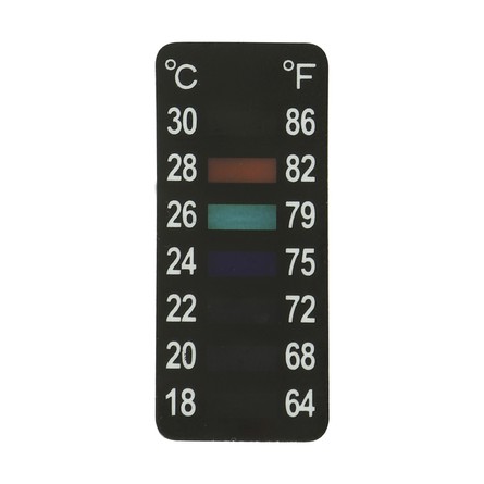 Термометр жидкокристаллический самоклеящийся 18-34 °C - наклейка-термометр. Наклейка имеет 2 цветные температурные шкалы - Цельсия °C и Фаренгейта °F, измеряемый термометром диапазон от +18°С до +34°С и от +64 °F до 93 °F. Показания текущей температуры располагаются в прямоугольнике зеленого цвета. Если зеленый цвет на термометре отсутствует, то текущая температура — среднее между значениями на синем и коричневом прямоугольнике (см. рис.). Влагостойкая цветная ЖК шкала позволяет легко снимать показания с термометра. Характеристики: Цена деления: 1°C; Диапазон измерений: 18-34 °C и 64-93 °F
