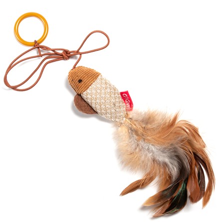 Игрушка-дразнилка для кошек серии FEATHER TEASER "Рыбка" предназначена для удовлетворения охотничьих инстинктов вашего питомца. Игрушка надевается на палец или прикрепляется на ручку двери. Дополнена натуральным пером. Такая игрушка порадует вашего любимца, а вам доставит массу приятных эмоций, ведь наблюдать за игрой всегда интересно и приятно. Цвет изделия: коричневый с бежевым. Размер изделия: 30*20*65мм (длина с перьями - 200мм), диаметр кольца - 30мм.