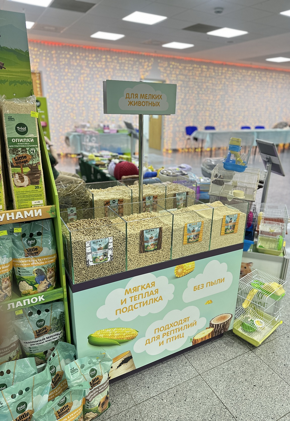 На объединенном стенде торговых марок Triol и Gamma гостей ждали памятные сувениры и полезные подарки. В рамках специальной тестовой зоны все желающие смогли оценить эффективность гигиенических наполнителей из кукурузы, древесины, сена и опилок. А широкий ассортимент позволил посетителям приобрести все самое необходимое для маленьких пушистых друзей — от просторных клеток до развивающих игрушек.