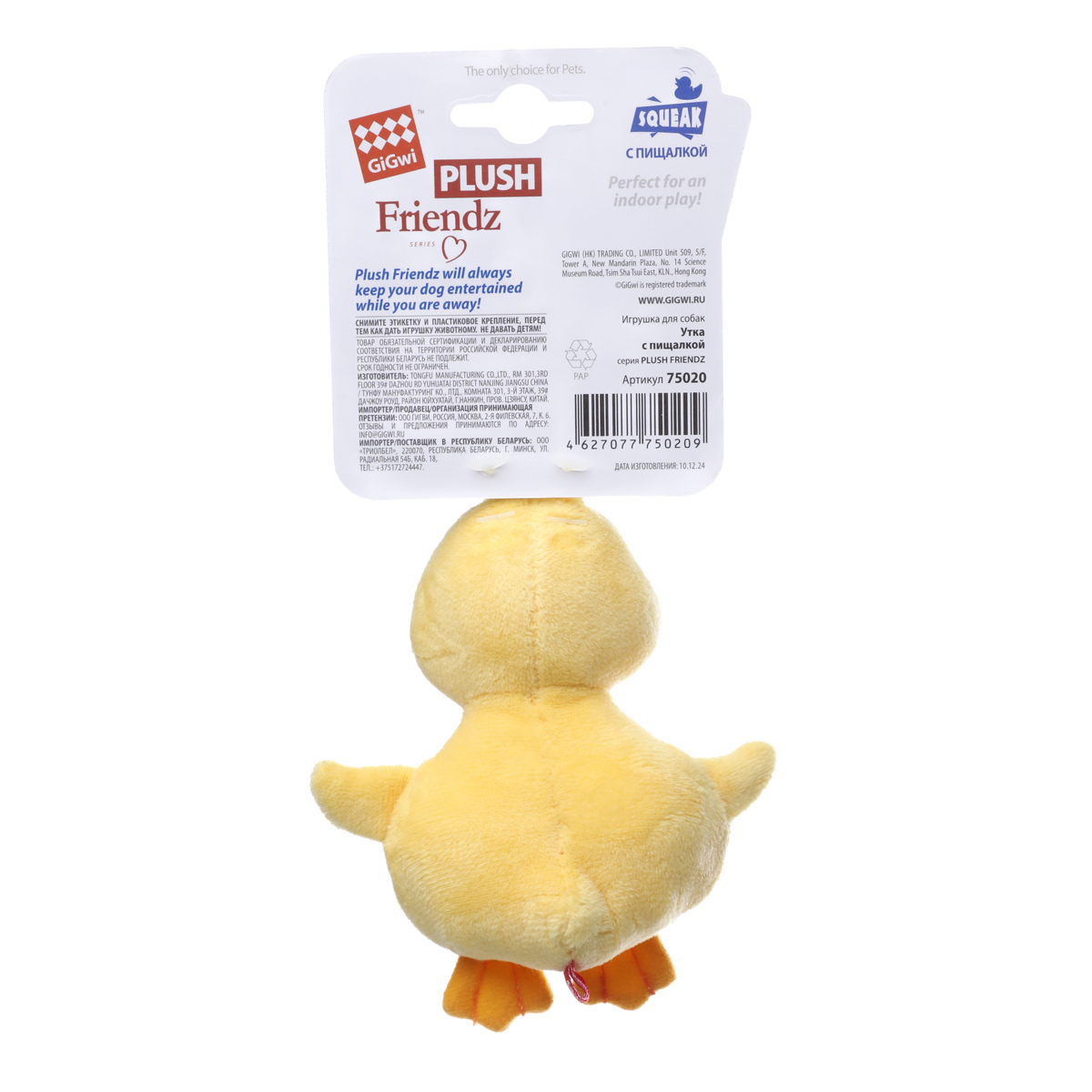 75020 Игрушка для собак Утка с пищалками 12см, серия PLUSH FRIENDZ, GiGwi