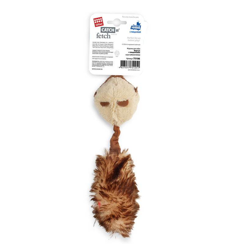 Игрушка для собак "Барсук" сделана из мягкого текстиля, внутри которого находится теннисный мяч. Игрушка оснащена пищалкой для привлечения внимания собаки.