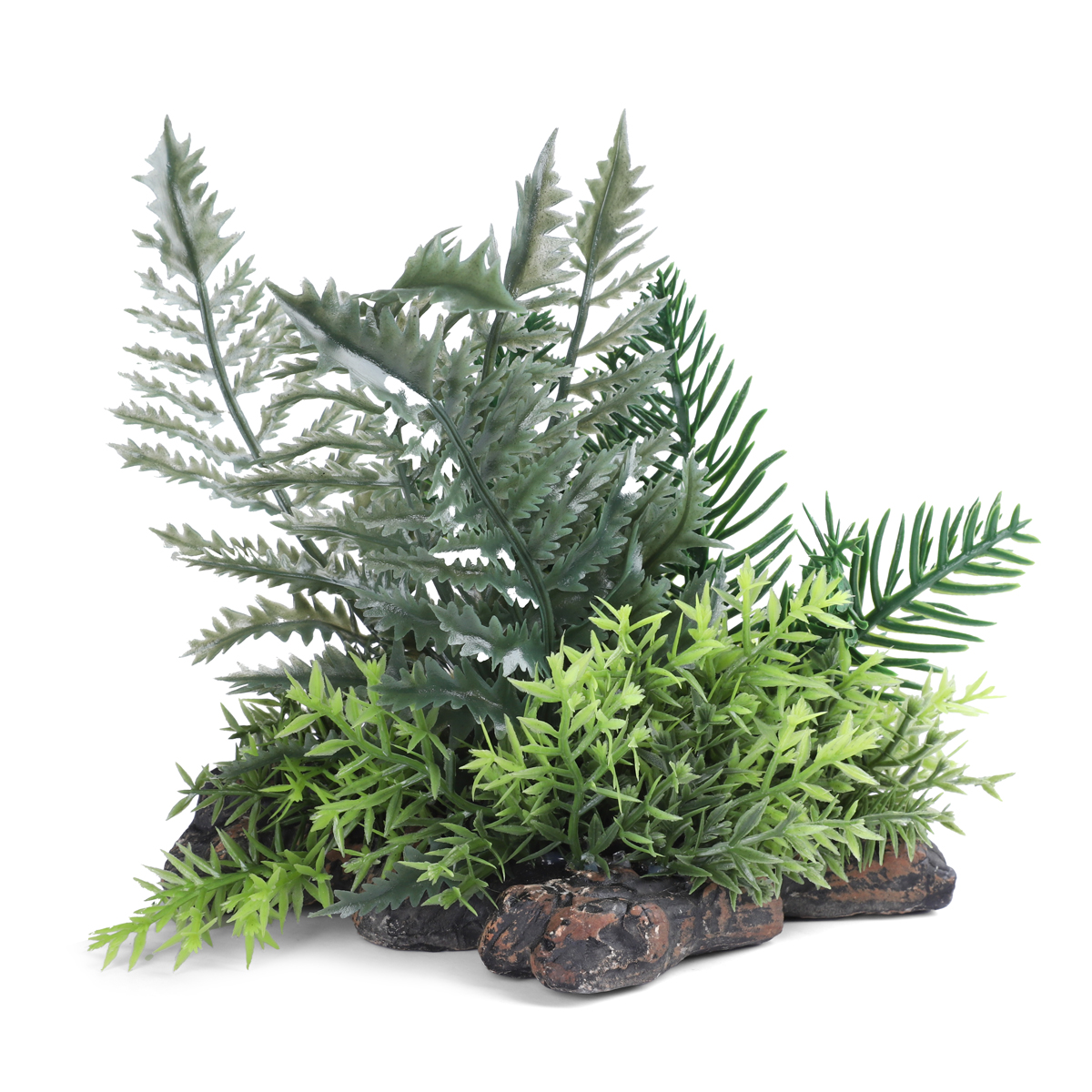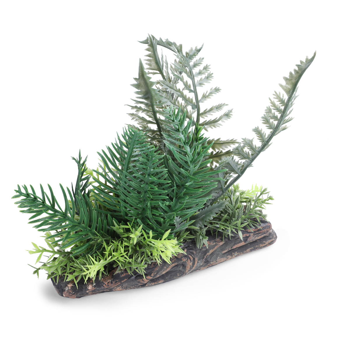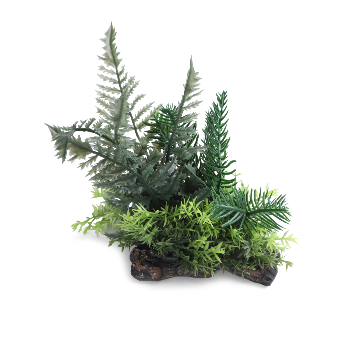 Растения - это не только завершающий штрих в оформлении, но и необходимый атрибут любого террариума. Они дают укрытие и тень, по ним животное может перемещаться, они придают трехмерность внутреннему пространству террариума. Пластиковое растение на подставке из керамики подходит для оформления пустынных, полупустынных и тропических террариумов. Неоспоримое преимущество искусственных растений в том, что им не нужен полив, в них не заводятся паразиты и грибки, их легко мыть и дезинфицировать, и прослужат они неизмеримо дольше, чем живые растения.