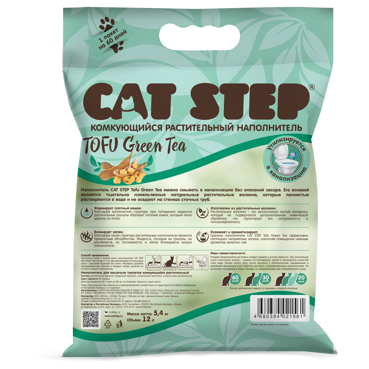 Растительные волокна, которые являются основой наполнителя CAT STEP Tofu Green Tea, легко растворяются в воде, поэтому его можно смывать в канализацию без опасений. Растительные волокна – это натуральный и экологически чистый материал, который не подвергается химической обработке, что гарантирует его гипоаллергенность и безопасность для питомцев и их хозяев. Благодаря волокнистой структуре при попадании жидкости растительные гранулы образуют плотный комок, который легко удалить из лотка. Жидкость, попадая на гранулы, не растекается, не застаивается, и запах блокируется внутри наполнителя. Легкий аромат зеленого чая освежает помещение, а оригинальный оттенок наделяет продукт особой эстетикой. Заполните сухой и чистый лоток наполнителем CAT STEP Tofu Green Tea слоем 5-7 см. Регулярно удаляйте комочки и экскременты, досыпая на их место свежий наполнитель. Использованный наполнитель можно смывать в унитаз. Объем: 12 л.