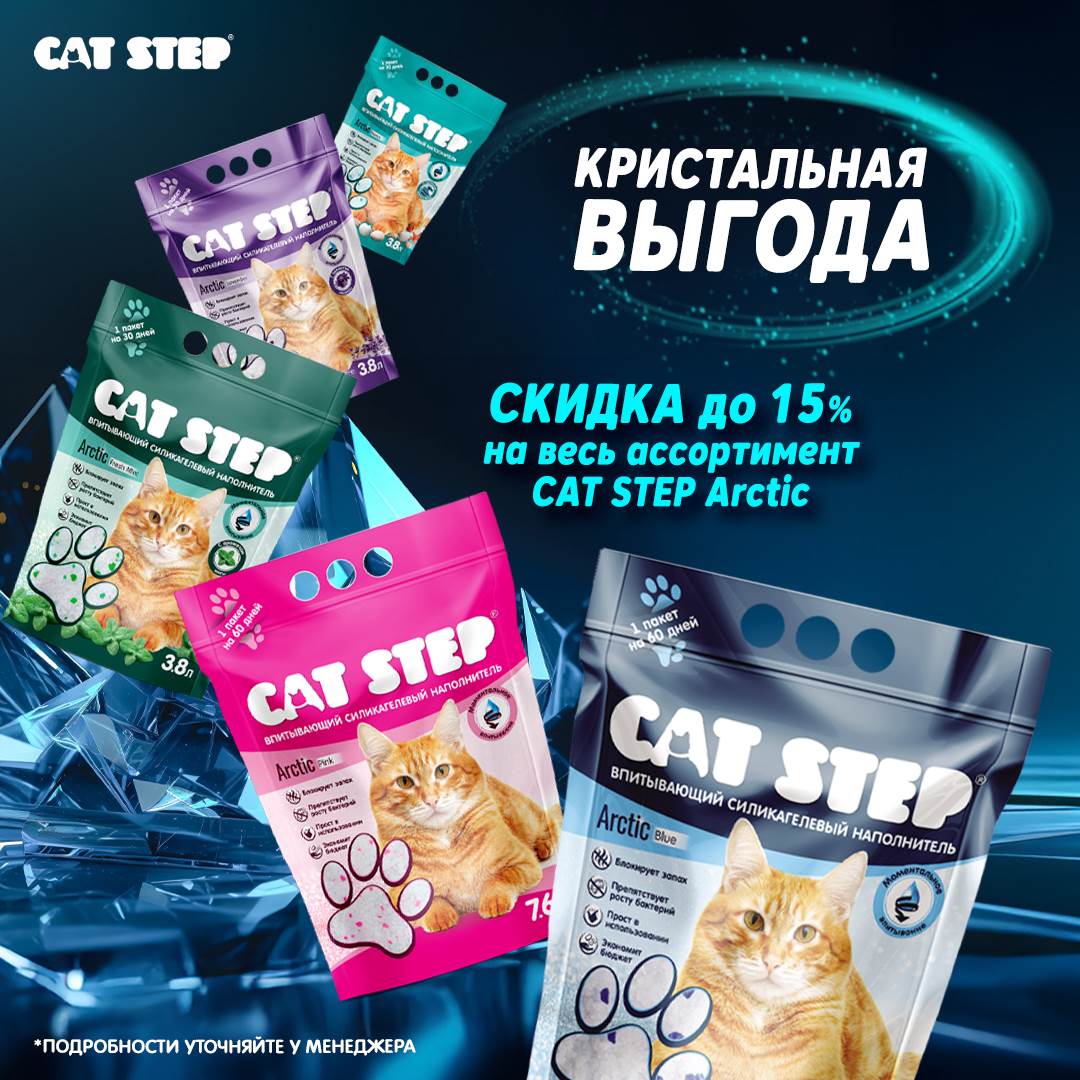 Рады сообщить, что в период с 1 по 30 ноября будет действовать специальное предложение на силикагелевые наполнители CAT STEP Arctic. При покупке от 6 SKU из акционного ассортимента активируется дополнительная скидка -10%, а при покупке от 12 SKU скидка увеличивается до -15%.
