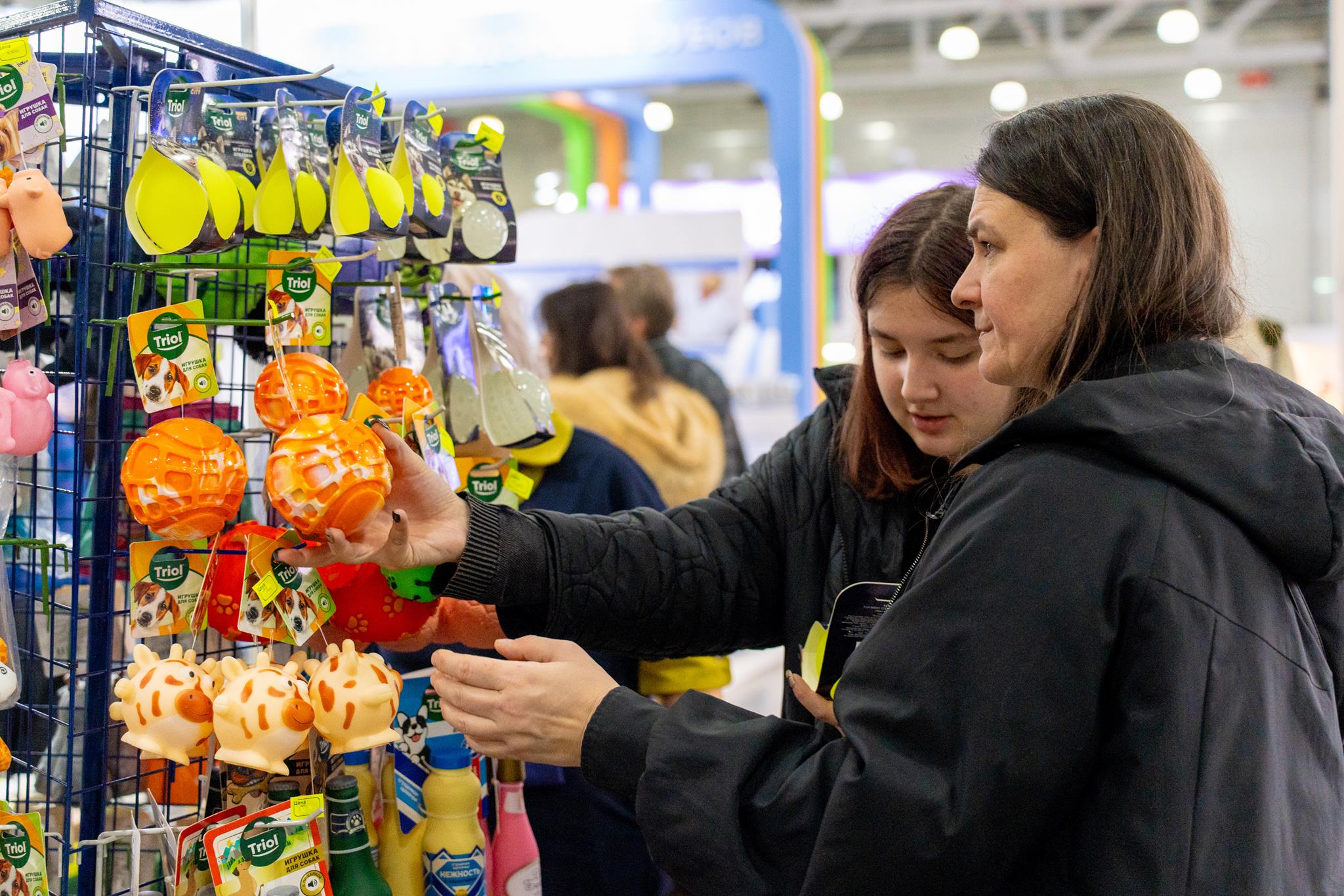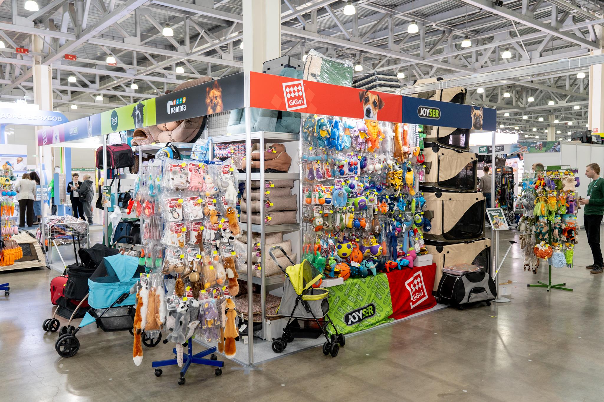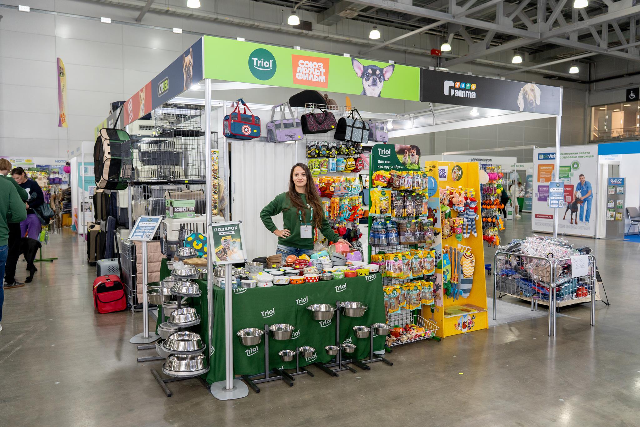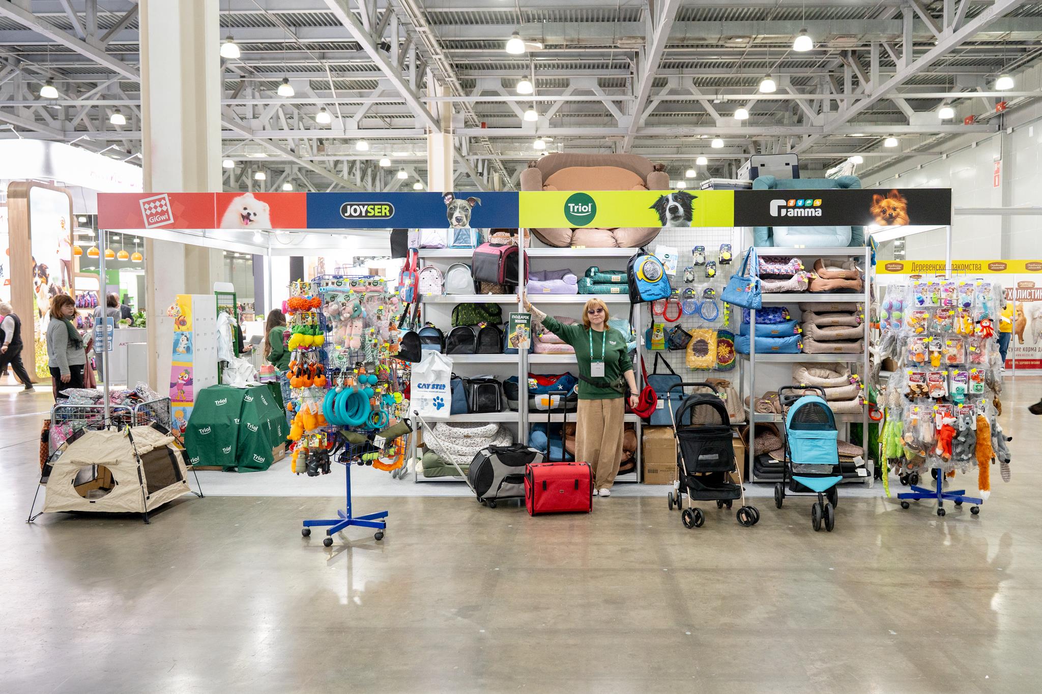Параллельно с конкурсной программой на выставочной площадке развернулась масштабная ярмарка зоотоваров. Торговые марки Triol, Gamma, GiGwi и Joyser презентовали свою продукцию на совместном стенде, где вниманию посетителей были представлены лежанки и тенты, переноски и коляски для путешествий, прогулочная амуниция и одежда, а также яркие игрушки и полезные лакомства для собак.