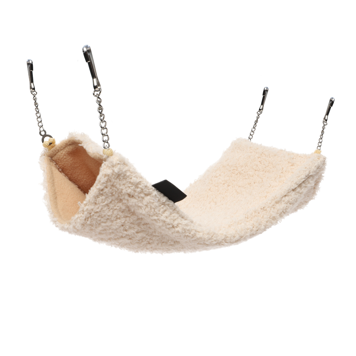 Гамак-туннель для мелких животных обязательно понравится вашему питомцу. Выполнен из мягкого плюшевого материала. Легко подвешивается в клетке при помощи карабинов. Цвет: бежевый. Размер: 280*140*15мм.