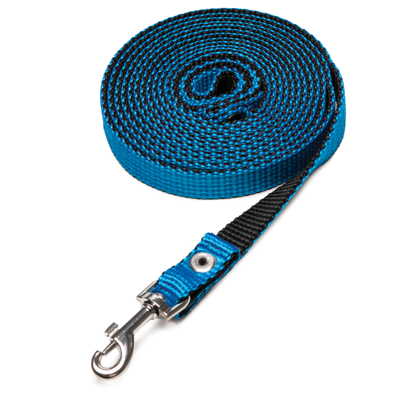 Прочный, долговечный и надежный капроновый поводок длиной 5 метров при ширине 16 мм. Поводок применяется для прогулок и дрессировки собаки. Изделие снабжено надежным карабином из высококачественной стали, а специальный переходник позволяет карабину крутиться вокруг своей оси, предотвращая запутывание. На поводке имеется петля, которая одевается на руку для более удобного использования. Ассортимент товара включает 4 расцветки.