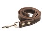 Прочный, долговечный и надежный кожаный поводок. Двойное изделие применяется для прогулок и дрессировки собаки. Изделие снабжено надежным металлическим карабином, а специальный переходник позволяет карабину крутиться вокруг своей оси, предотвращая запутывание. На поводке имеется петля, которая одевается на руку для более удобного использования. Варианты расцветок: бежевый, коньячный, коричневый, черный. Размер изделия: 23*1300мм.