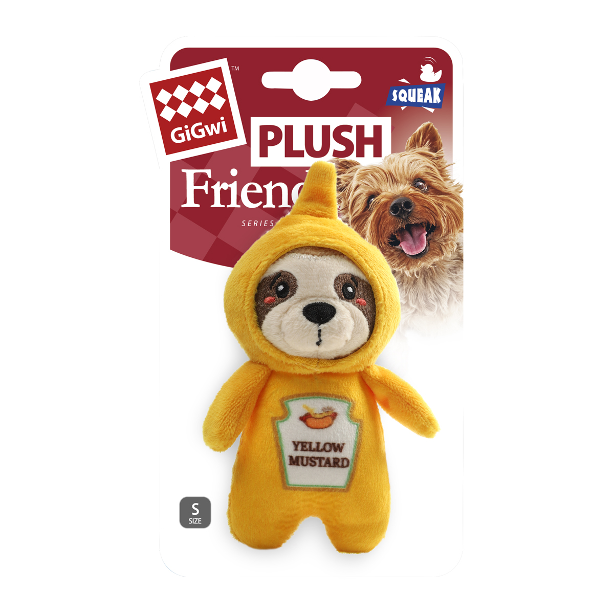 GiGwi PLUSH FRIENDZ Игрушка мягкая для собак "Ленивец в костюме горчицы с пищалкой", 130мм