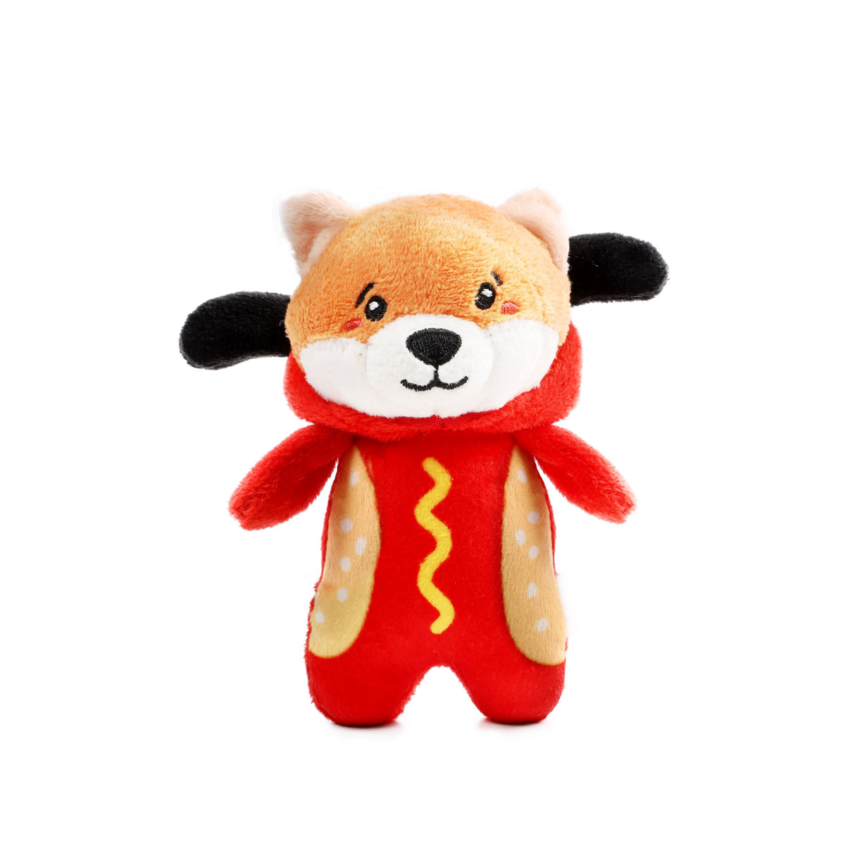 GiGwi PLUSH FRIENDZ Игрушка мягкая для собак "Лисичка в костюме хот-дога с пищалкой", 125мм