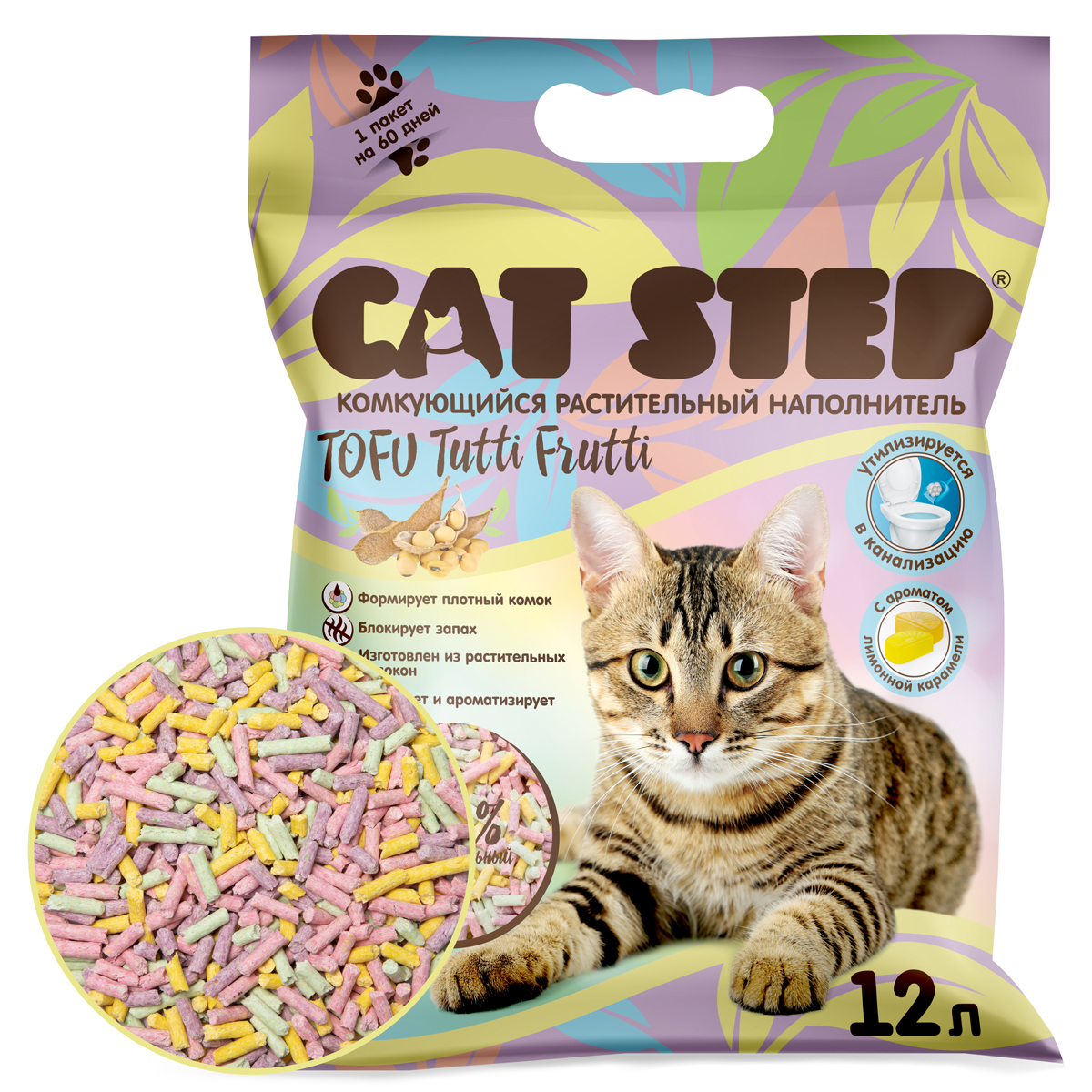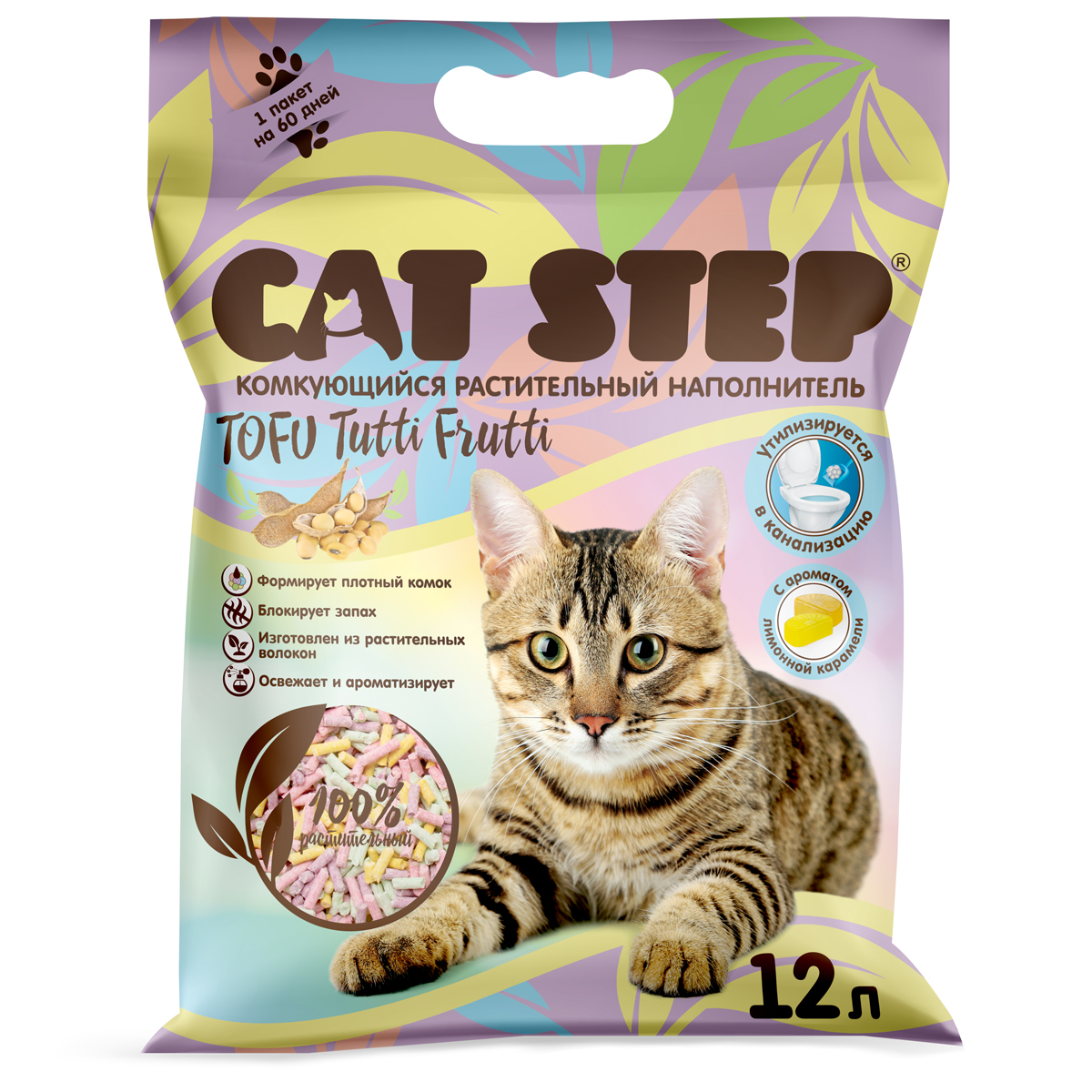 Наполнитель комкующийся растительный CAT STEP Tofu Tutti Frutti, 12 л