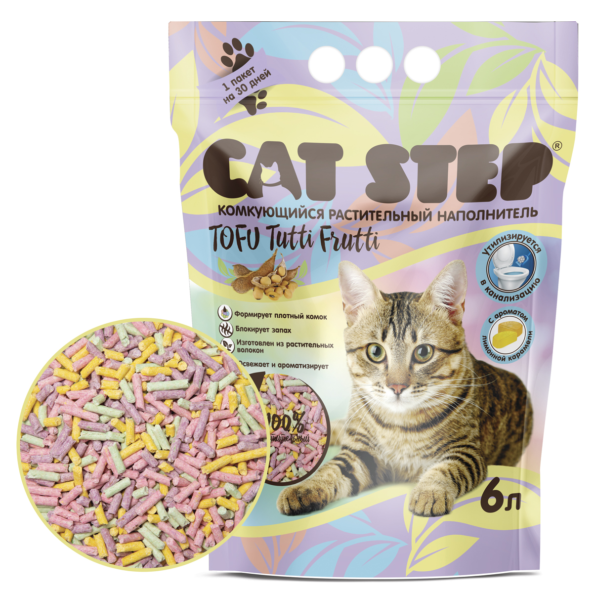 Растительные волокна, которые являются основой наполнителя CAT STEP Tofu Tutti Frutti, легко растворяются в воде, поэтому его можно смывать в канализацию без опасений. Растительные волокна – это натуральный и экологически чистый материал, который не подвергается химической обработке, что гарантирует его гипоаллергенность и безопасность для питомцев и их хозяев. Благодаря волокнистой структуре при попадании жидкости соевые гранулы образуют плотный комок, который легко удалить из лотка. Жидкость, попадая на гранулы, не растекается, не застаивается, и запах блокируется внутри наполнителя. Разноцветные гранулы нежных оттенков поднимут настроение хозяину и освежат помещение легким ароматом лимонной карамели. Заполните сухой и чистый лоток наполнителем CAT STEP Tofu Tutti Frutti слоем 5-7 см. Регулярно удаляйте комочки и экскременты, досыпая на их место свежий наполнитель. Использованный наполнитель можно смывать в унитаз. Объем: 6 л.