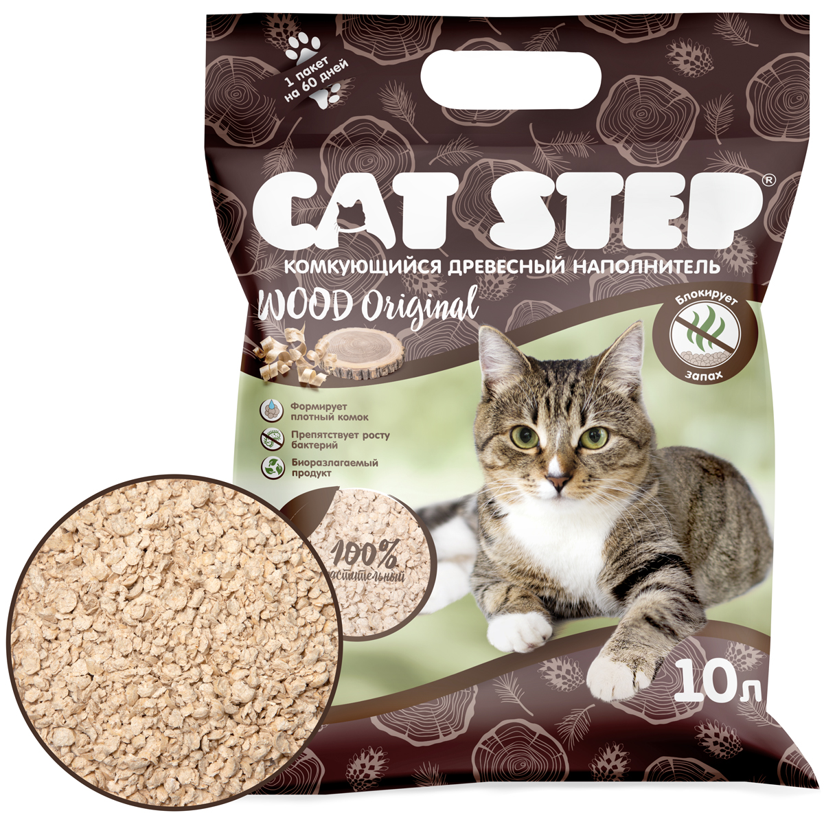 Наполнитель комкующийся растительный CAT STEP Wood Original, 10 л