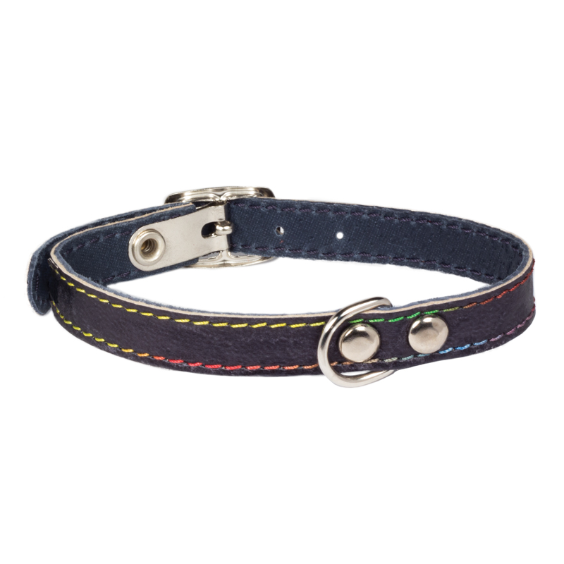 Оригинальный кожаный ошейник - стильный и функциональный аксессуар для небольших собак. Двухслойное изделие выполнено из мягкой, но прочной цветной кожи высокого качества с использованием крепкой металлической фурнитуры. Длину изделия удобно подгонять под индивидуальные параметры животного, а прочное основание ошейника отлично подойдет для крепления поводка, адресника или других аксессуаров. Размеры изделия: 250*10*3мм. Варианты расцветок: бежевый, синий, красный, коричневый.