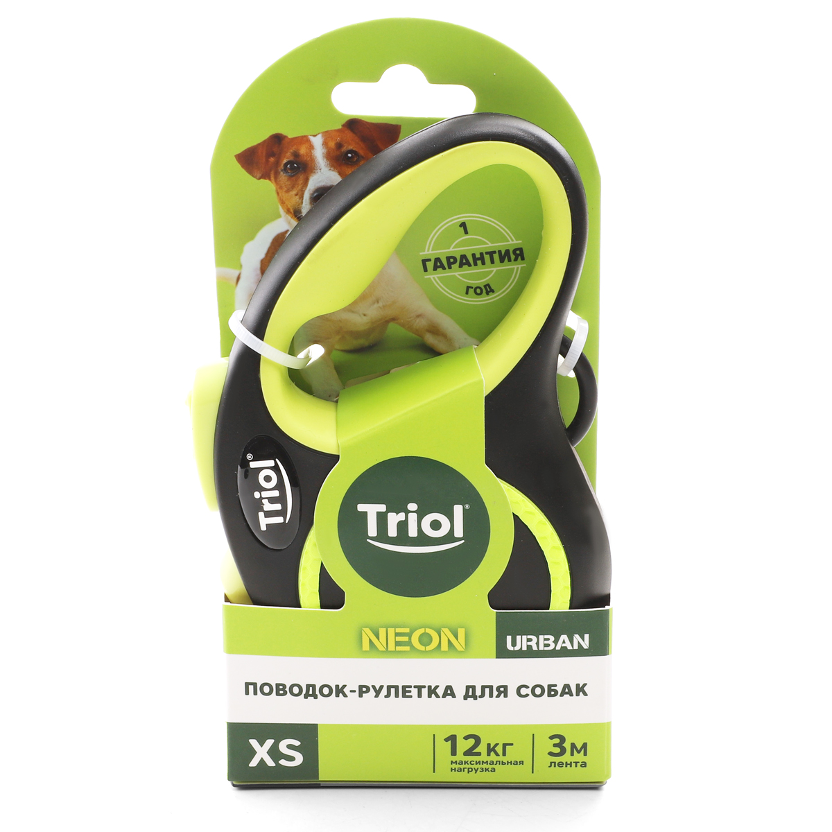 Поводок-рулетка для собак Urban Neon XS, 3м до 12кг, лента, черный, Triol