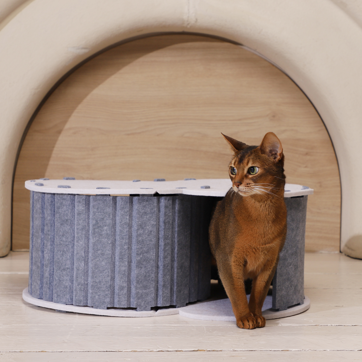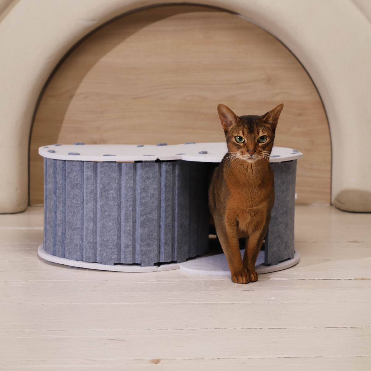 Оригинальный домик не только оживит интерьер, но и порадует вашего питомца. Изделие выполнено из плотного войлока - материала, который одновременно удерживает тепло и хорошо пропускает воздух. Такой уютный домик станет прекрасным местом для отдыха питомца - как внутри, так и "на крыше" (оптимальная нагрузка на "крышу" - до 10кг). Внутренняя конструкция домик сделана в форме лабиринта, благодаря чему домик может использоваться для активных игр. Сборка изделия - простая и быстрая, при необходимости домик можно разобрать для компактного хранения или транспортировки. Цвет изделия: серый. Размер изделия: 580*400*240мм.