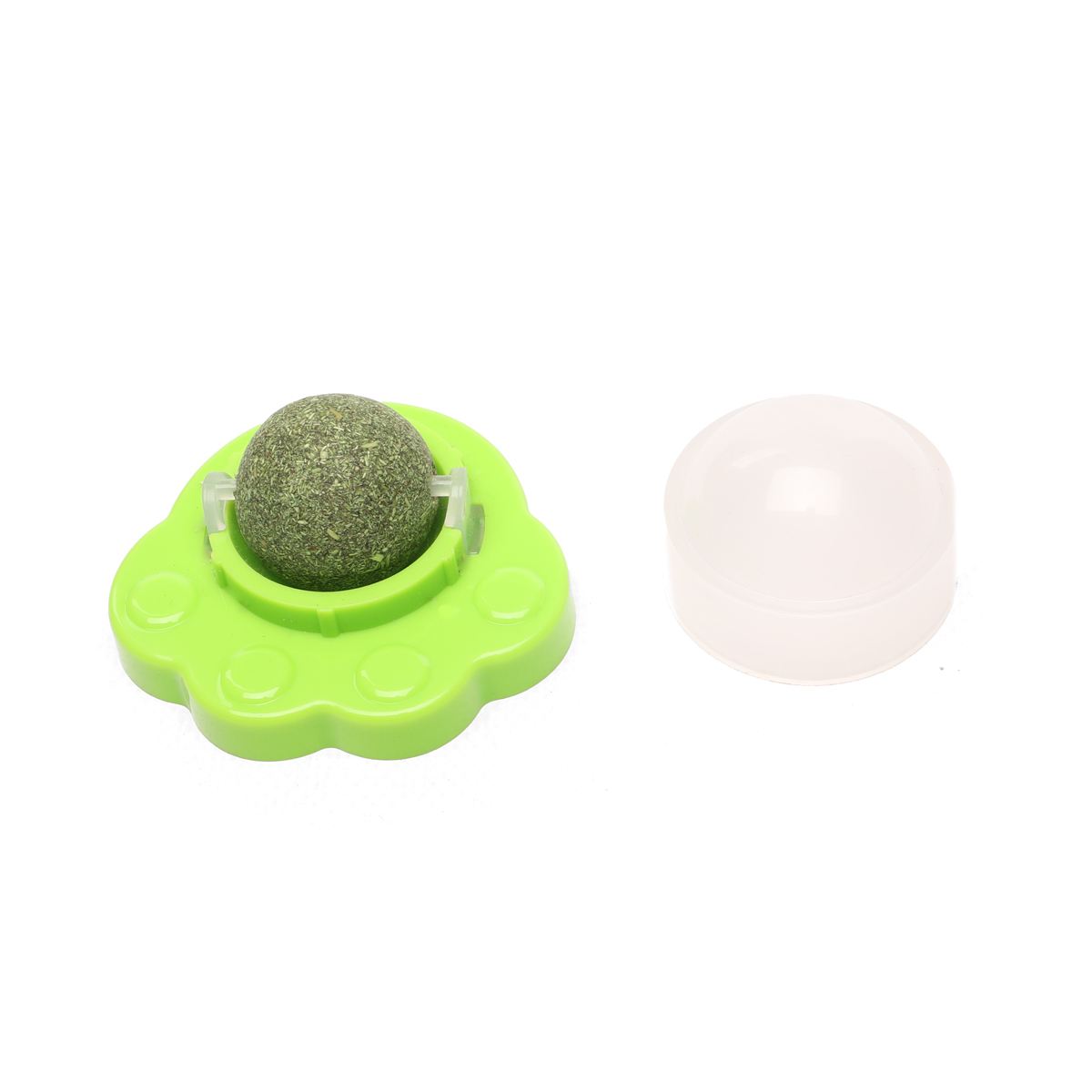 Лизательный шарик из кошачьей мяты - это интерактивная игрушка для кошек, которая крепится на стену или другую вертикальную поверхность. Шарик изготовлен из безопасных материалов с добавлением сушеной кошачьей мяты (котовника), которая привлекает питомцев и стимулирует их активность. Клейкая лента для фиксации в комплекте. Цвет: зеленый. Размер игрушки: 68*64*35мм. Размер шарика: d25мм.