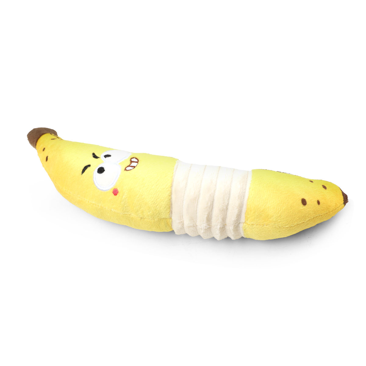 Очаровательная игрушка для собак "Сладкий банан" выполнена из мягкого плюша. Она способна надолго привлечь внимание питомца и стать верным помощником в его воспитании, дрессировке и организации досуга. Благодаря продуманным габаритам изделие удобно носить в зубах, мягкая текстура позволяет питомцу заниматься любимым делом - грызть, кусать и трепать игрушку. "Банан" издает забавный звук при нажатии и тряске, пробуждая охотничьи инстинкты животного и делая игру еще интереснее. Цвет изделия: жёлтый. Размер изделия: 55*50*275мм.