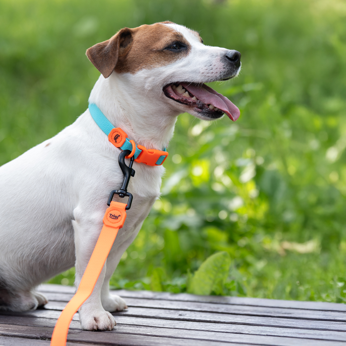 Ошейник для собак из биотана — функциональный аксессуар для прогулки с питомцем. Биотан — это прочный и гибкий материал, который отличается долговечностью и надежностью. Материал состоит из двух слоев: синтетическая стропа и полимерная оболочка. Он водонепроницаемый и термостойкий даже при сильной жаре или морозе. Ошейник не трескается, отталкивает влагу и грязь, а также не впитывает запахи. Амуницию из биотана удобно чистить и использовать для ежедневных прогулок. При этом яркий цвет амуниции дополнит любой образ питомца и его владельца. Размеры изделия регулируемой длины: 20*340-490мм (размер М). Цвет: оранжево-голубой.