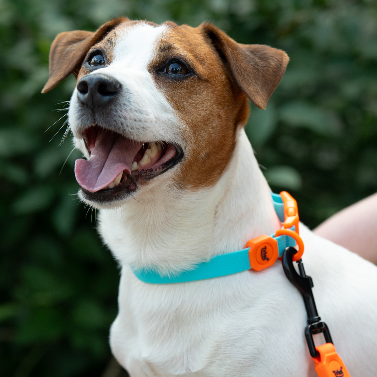 Ошейник для собак из биотана — функциональный аксессуар для прогулки с питомцем. Биотан — это прочный и гибкий материал, который отличается долговечностью и надежностью. Материал состоит из двух слоев: синтетическая стропа и полимерная оболочка. Он водонепроницаемый и термостойкий даже при сильной жаре или морозе. Ошейник не трескается, отталкивает влагу и грязь, а также не впитывает запахи. Амуницию из биотана удобно чистить и использовать для ежедневных прогулок. При этом яркий цвет амуниции дополнит любой образ питомца и его владельца. Размеры изделия регулируемой длины: 15*270-370мм (размер S). Цвет: оранжево-голубой.