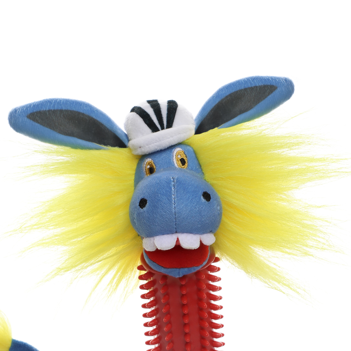 Мягкая и прочная, яркая и оригинальная – эта игрушка по мотивам любимого советского мультфильма "Бременские музыканты" станет любимым развлечением для вашего питомца! Мягкий полиэстер приятен на ощупь и функционален, а корпус из термопластичной резины не боится механических повреждений и выдерживает даже самые активные игры. "Осёл" способен надолго привлечь внимание питомца и стать вам верным помощником в его воспитании, дрессировке и организации досуга. Благодаря продуманным габаритам изделие удобно носить в зубах, мягкая текстура позволяет питомцу заниматься любимым делом - грызть, кусать и трепать игрушку, а звонкая "пищалка" внутри изделия пробуждает охотничьи инстинкты животного, делая игру еще интереснее. Цвет: красно-синий. Размер: 300*90*70мм.