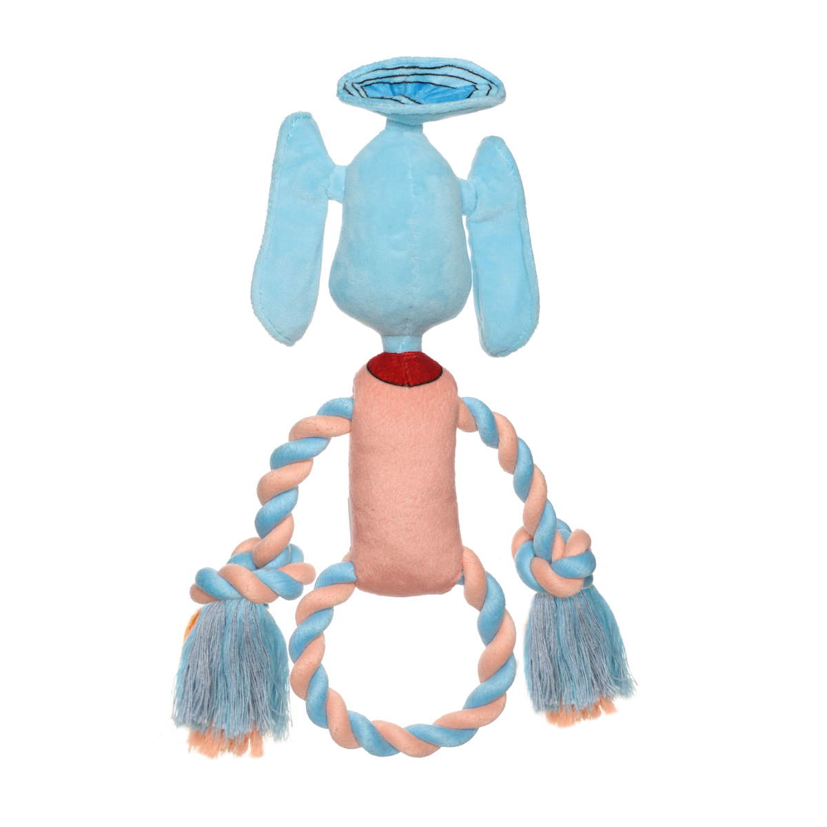 Эта забавная мягкая игрушка для собак в виде героя мультфильма "Тайна третьей планеты" изготовлена из текстиля высокого качества. В "теле" игрушки находится пищалка для привлечения внимания питомца, а "уши" наполнены шуршащим материалом. Благодаря верёвочным "рукам", проходящим через "тело" и незафиксированным в одном положении, игрушку удобно таскать в зубах, прятать в самых укромных уголках и играть в "перетяжки". Любимый сказочный персонаж и необычная упаковка изделия никого не оставят равнодушным! Цвет изделия: голубой с розовым. Размер изделия: 320*140*70мм (диаметр верёвочного кольца - 110мм).