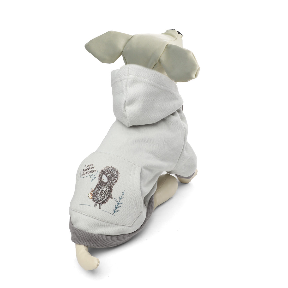 Толстовка "Ёжик-мечтатель" - это стильный и функциональный аксессуар для собак на каждый день по мотивам любимого мультфильма. Изделие имеет оригинальный дизайн и принт с популярным героем на спине. Толстовка надевается через голову. На рукавах предусмотрены удобные резинки, фиксирующие изделие на лапах животного, а универсальный фасон не стесняет движений питомца во время прогулки. Цвет: светло-серый. Длина по спинке: 350мм; обхват груди: 460мм; обхват шеи: 330мм.