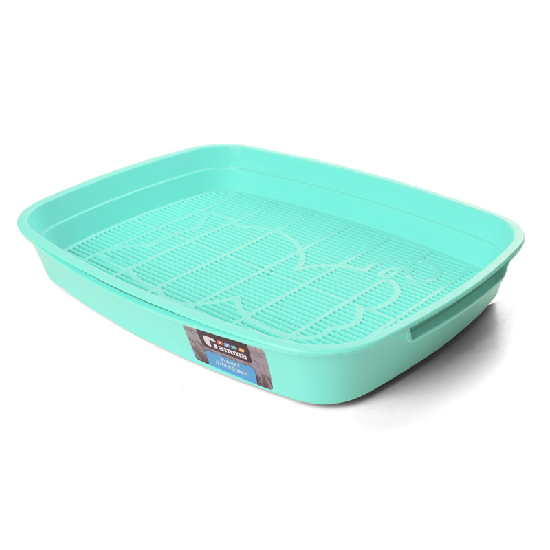 Туалет для кошек с сеткой малый "Леопольд", светло-бирюзовый, 340*260*50мм, Gamma