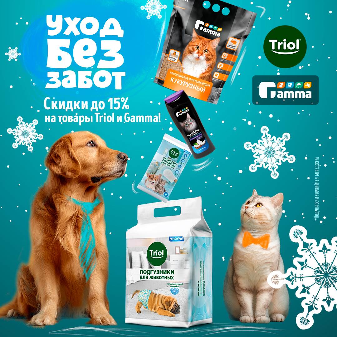 Рады сообщить, что с 12 по 31 января всех клиентов будут ждать скидки на впитывающие пеленки, подгузники, шампуни, спреи и прочие гигиенические принадлежности от брендов Gamma и Triol. При покупке продукции из акционного ассортимента активируется дополнительная скидка до -15%.