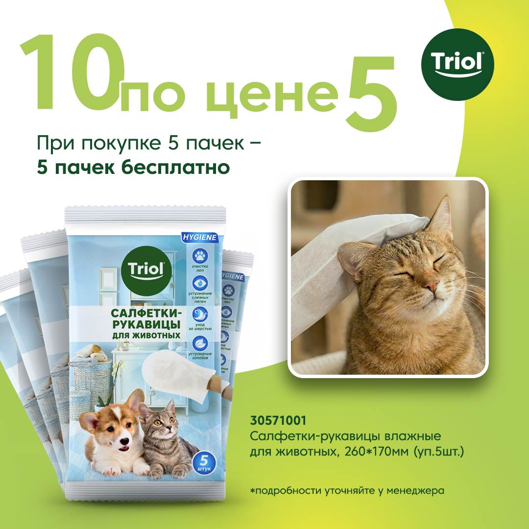 Акция 5+5: выгодное предложение на влажные салфетки-рукавицы Triol HYGIENE!